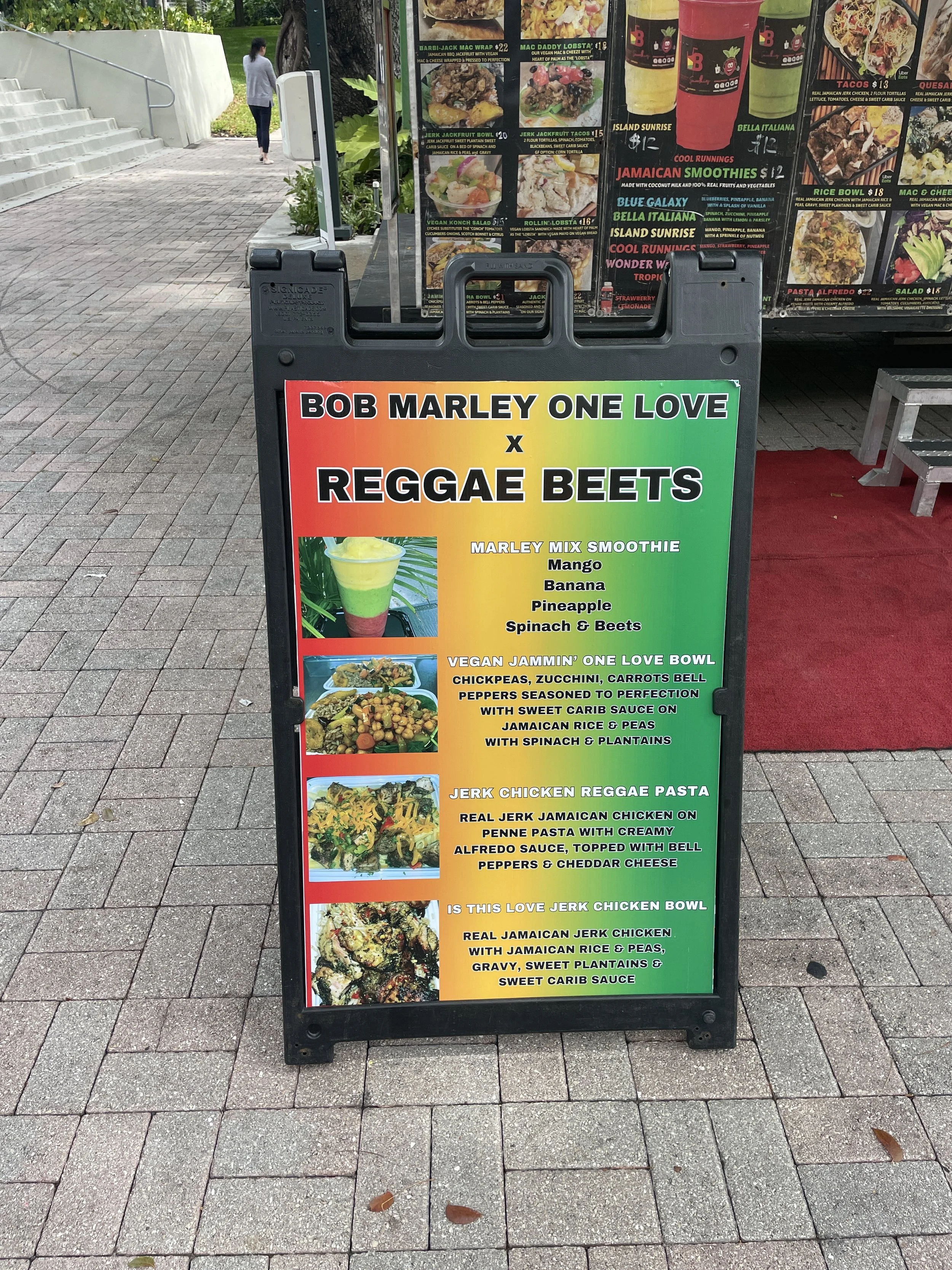 My first collaboration was in March 2024. In support of the Bob Marley: One Love movie, I partnered with one of my favorite campus food tricks, Reggae Beets. Together, we created a limited edition Bob Marley themed menu and interviewed the truck owners to learn more about their relationship to Bob Marley and his legacy.